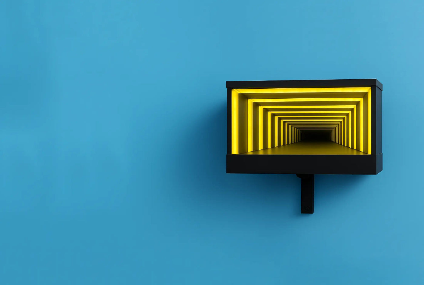 This is an Infinity LED Wall Light with a mirror tunnel effect that creates the illusion of endless depth. It is ideal for garages, shops, store entrances, showrooms, and modern home décor.